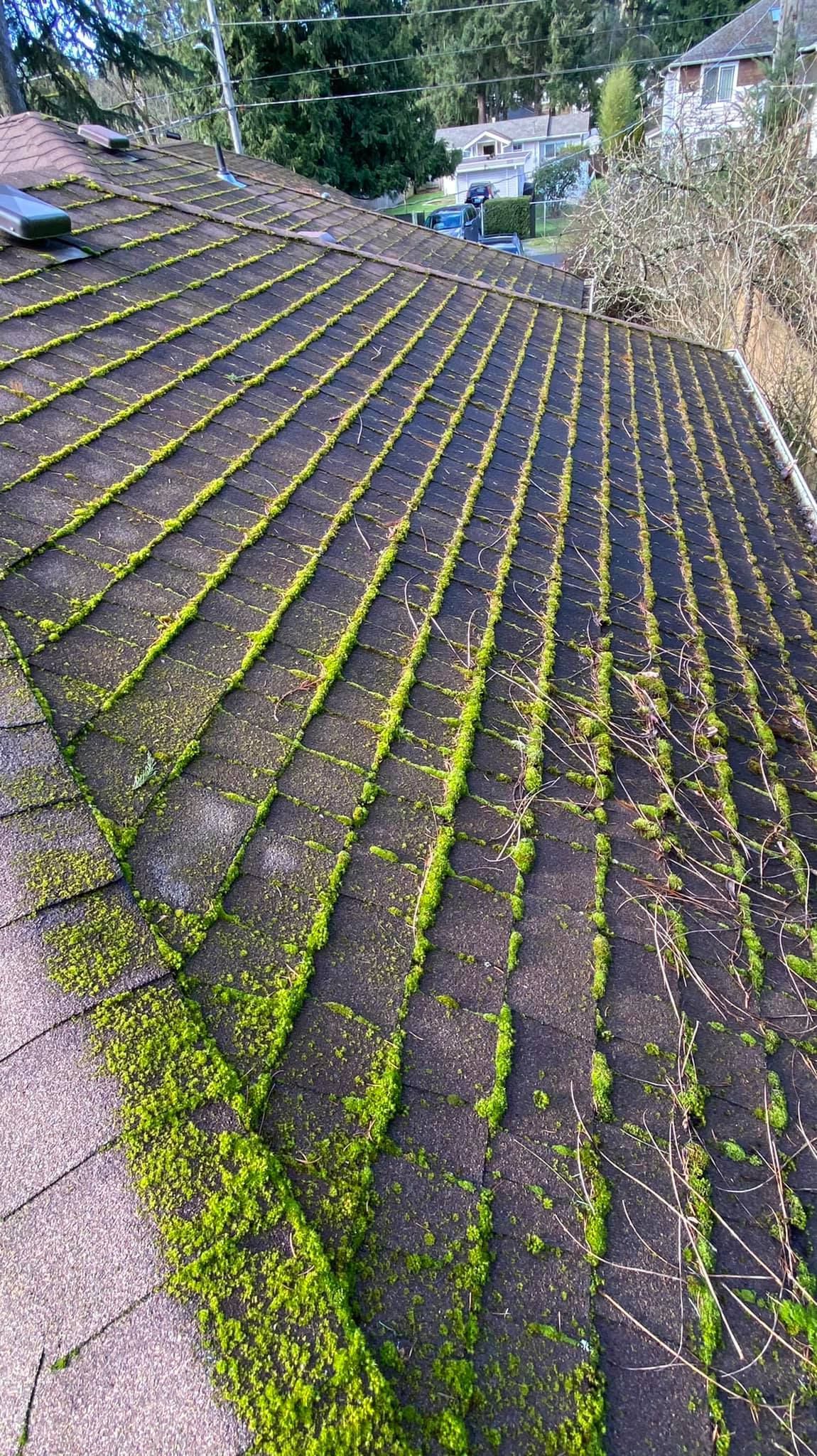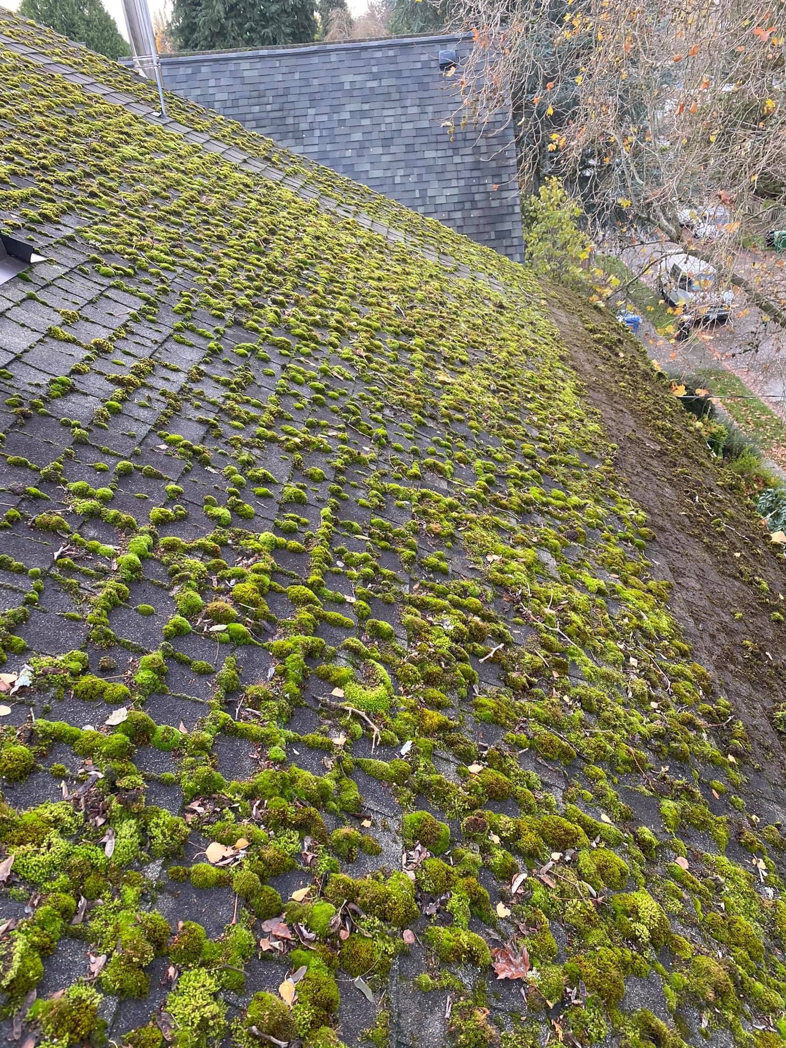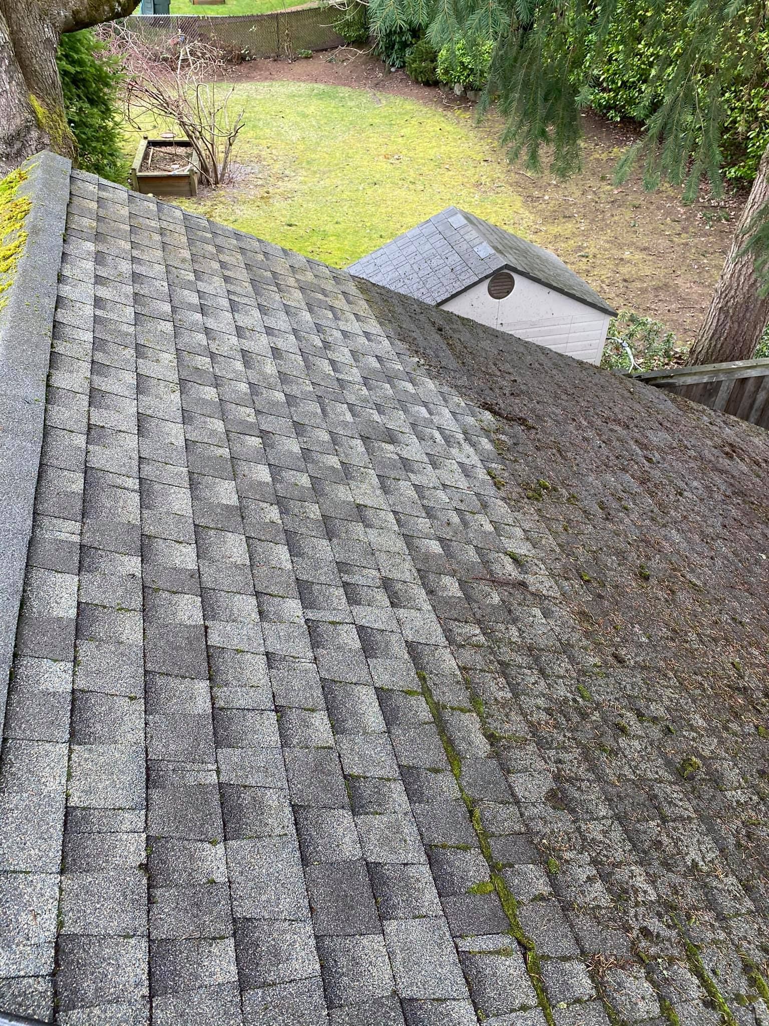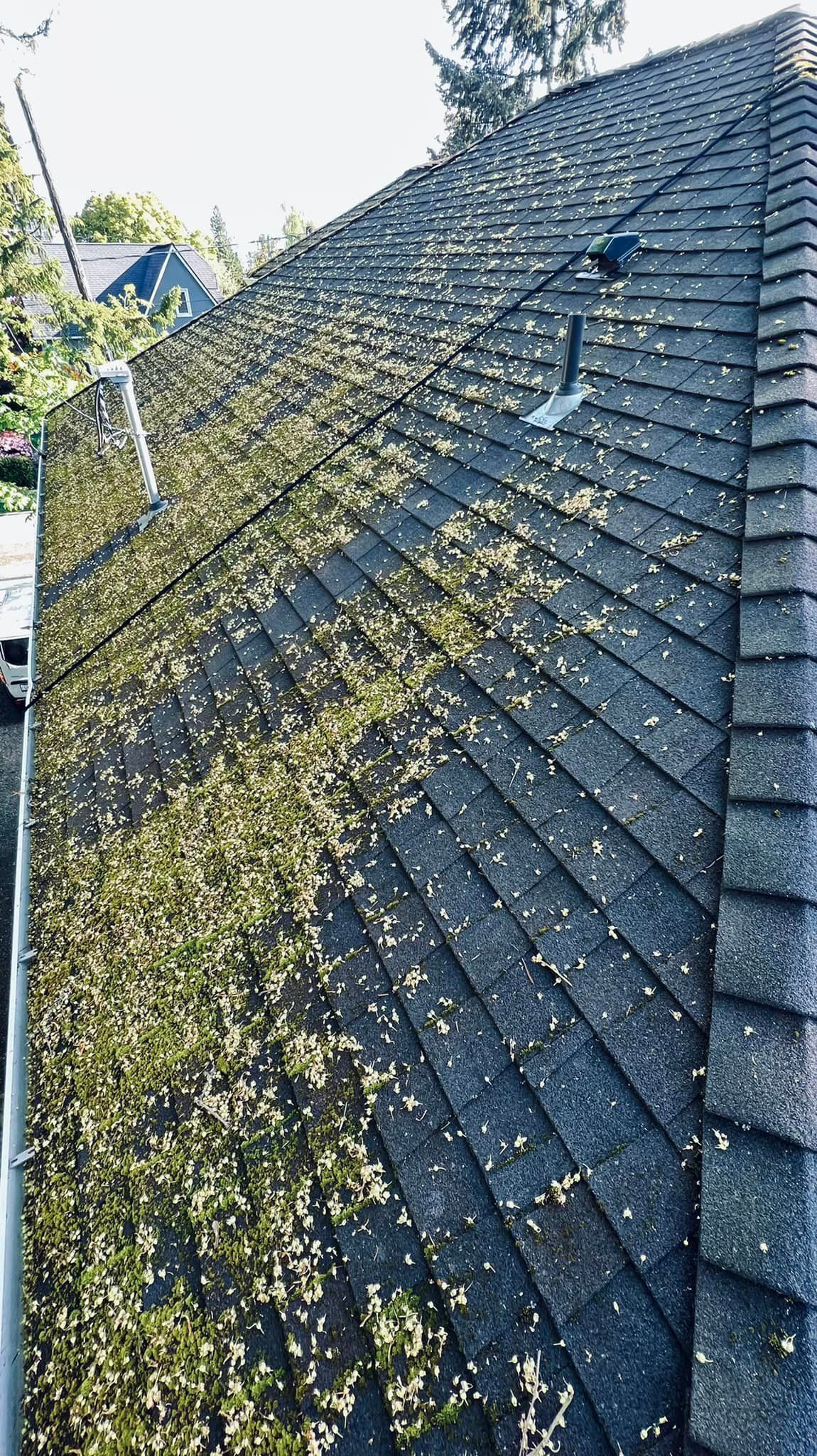 Most of these before and after photo comparisons were taken in the same day as the job was started, and we've done hundreds of jobs since 2020 alone, vouching for the efficiency of our work, which is why our roof moss removal cost is much more affordable than other Seattle roof cleaning companies.