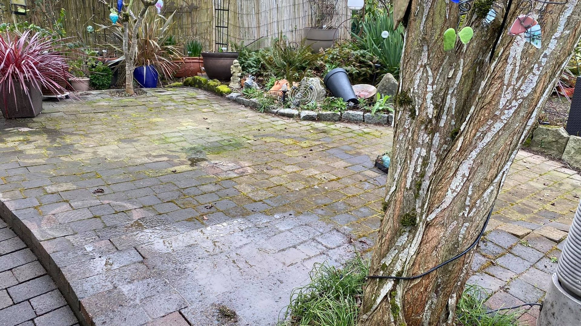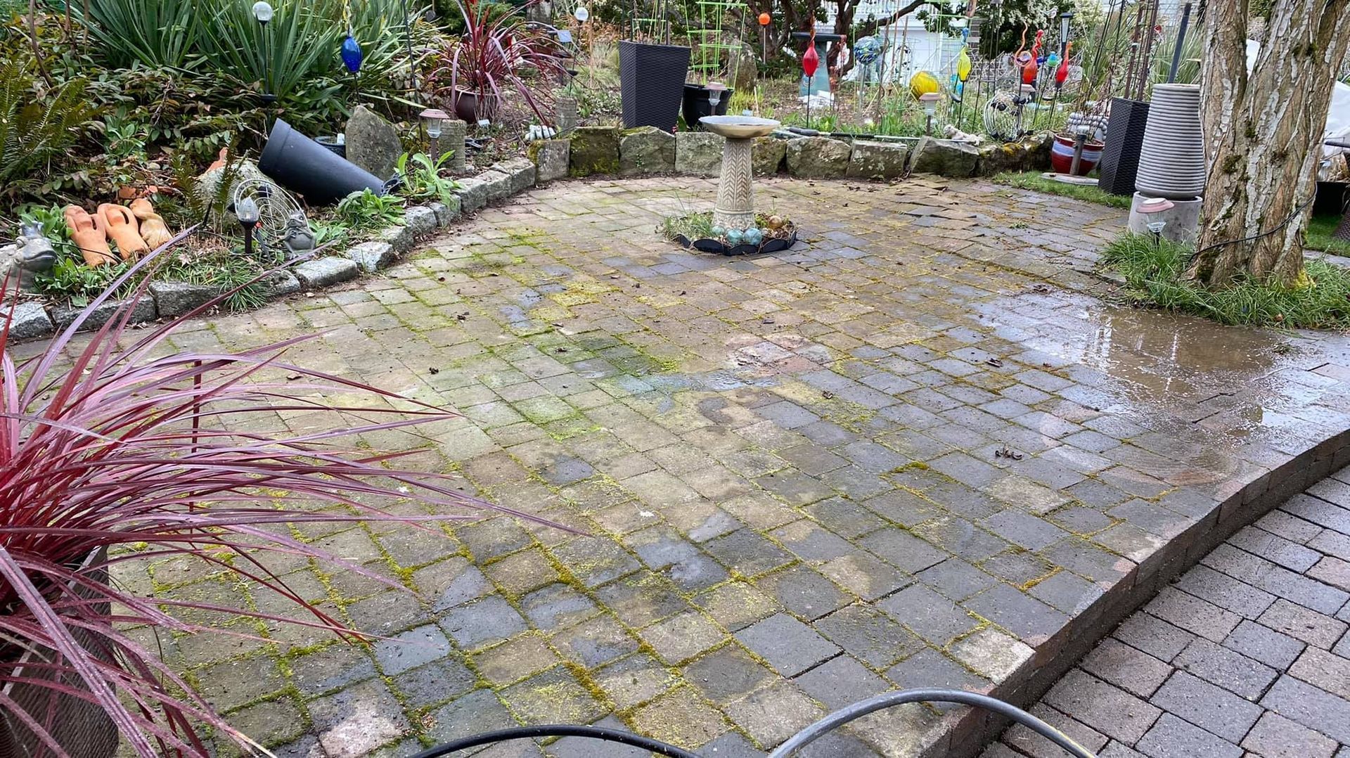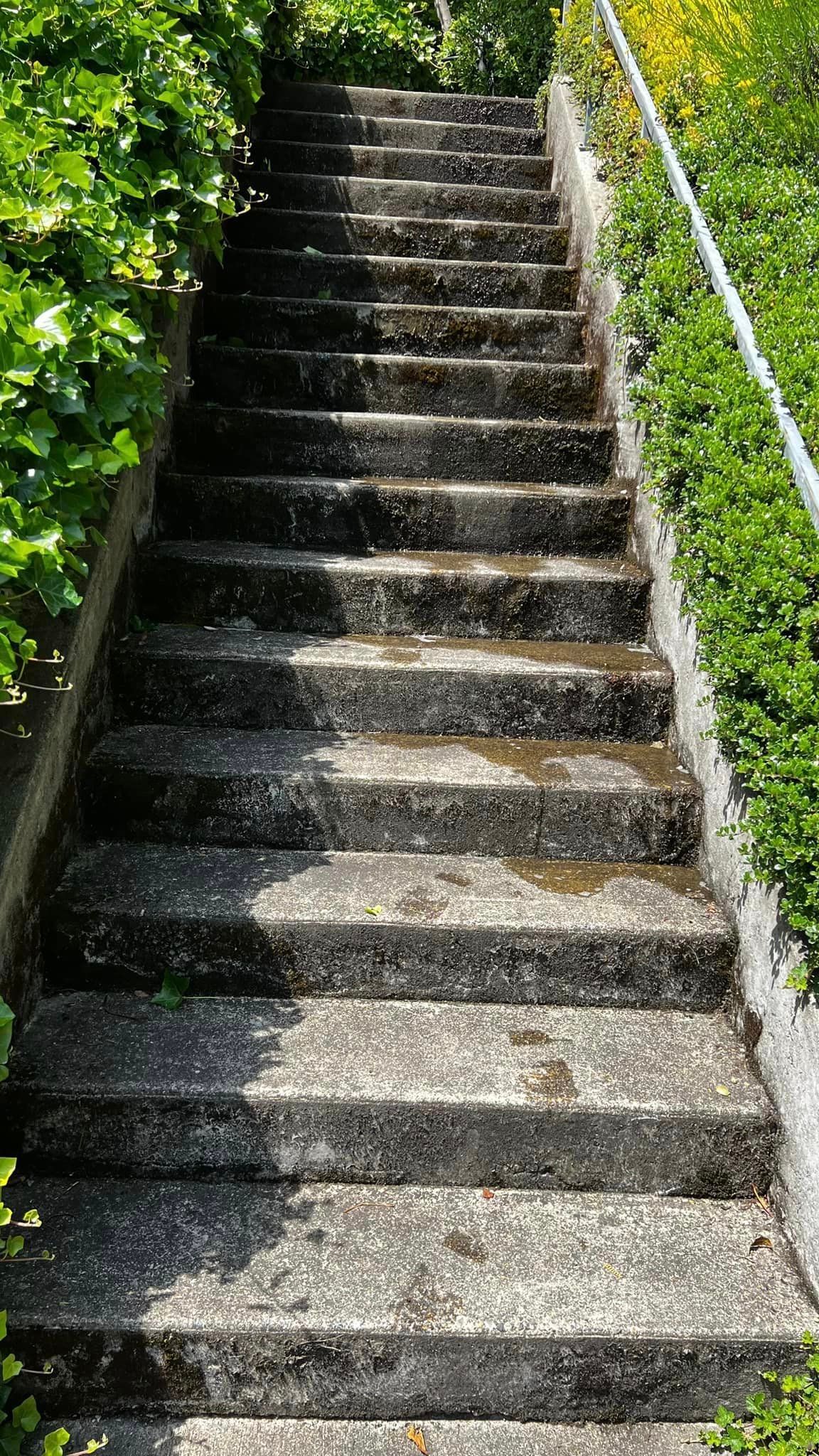 (As you scroll from top to bottom notice how the same dirty exterior surfaces like roofs, patios, and driveways get cleaner and moss-free)